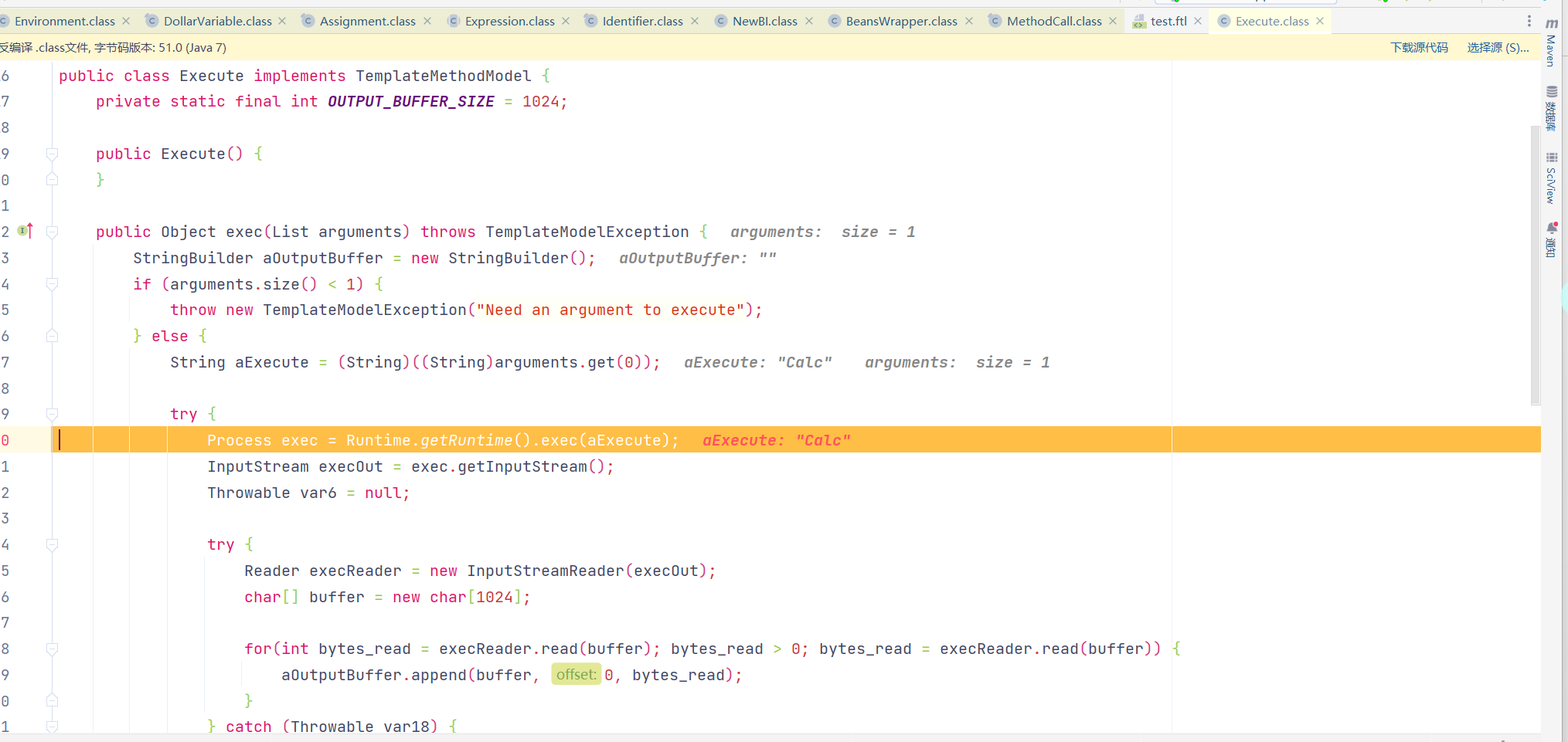 freemarker.core.MethodCall#_eval() 此处 targetMethod 即在 ftl 语句中声明的类